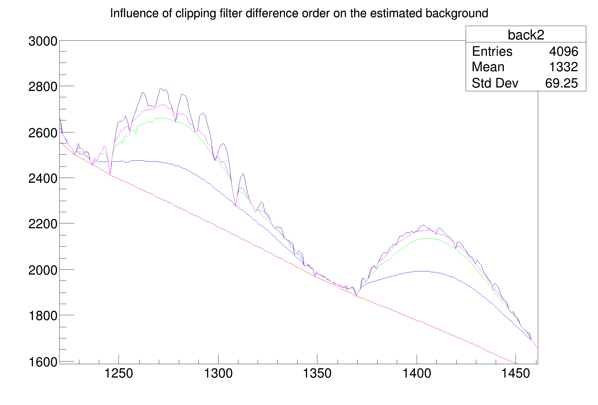 "Influence of clipping filter difference order on the estimated background");
