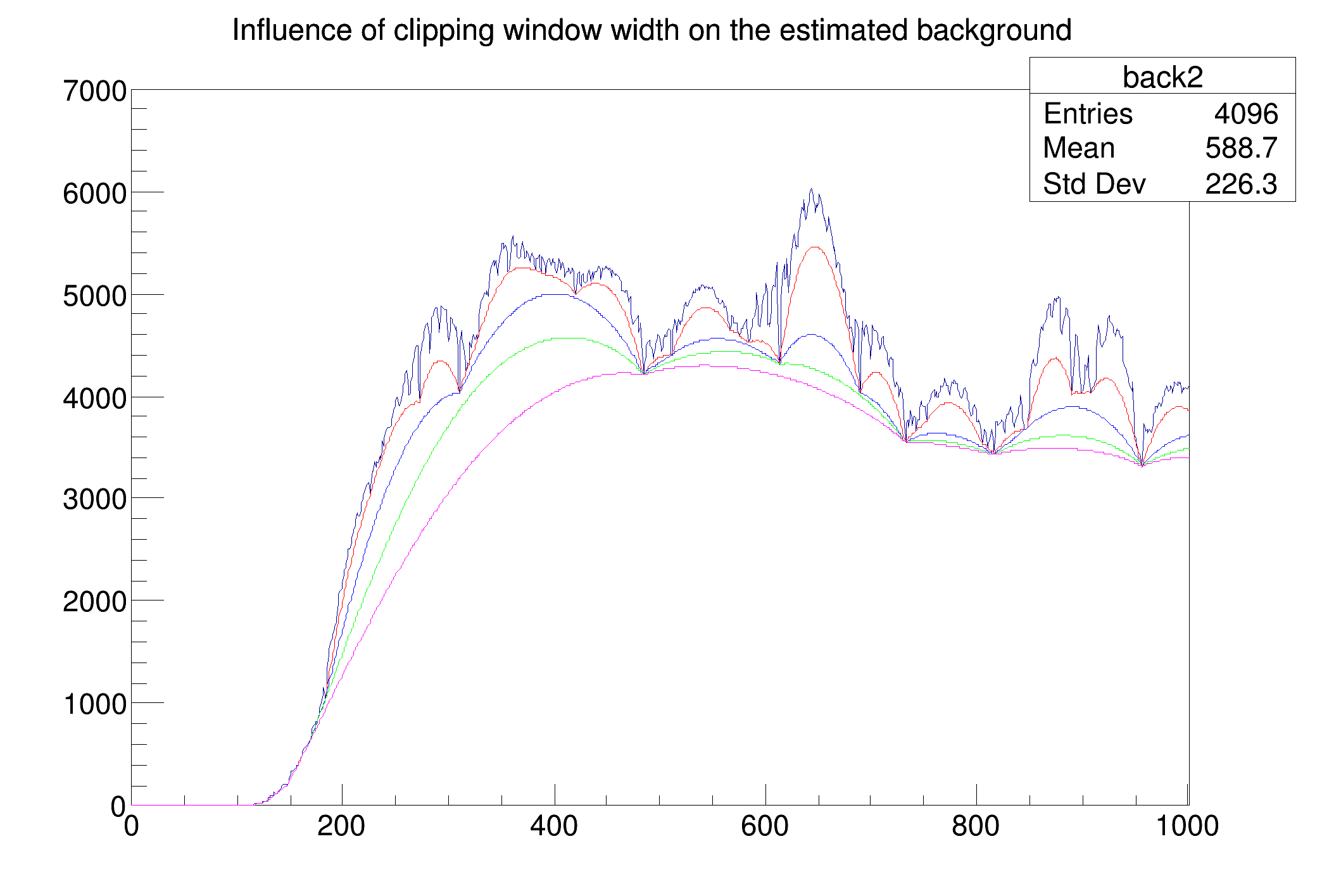 "Influence of clipping window width on the estimated background");