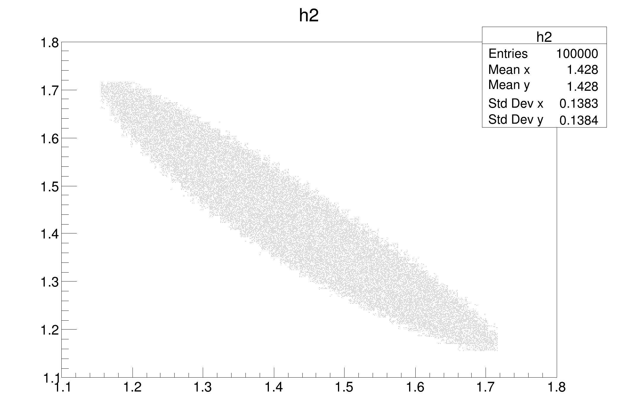 TH2F *h2 = new TH2F("h2","h2", 50,1.1,1.8, 50,1.1,1.8);