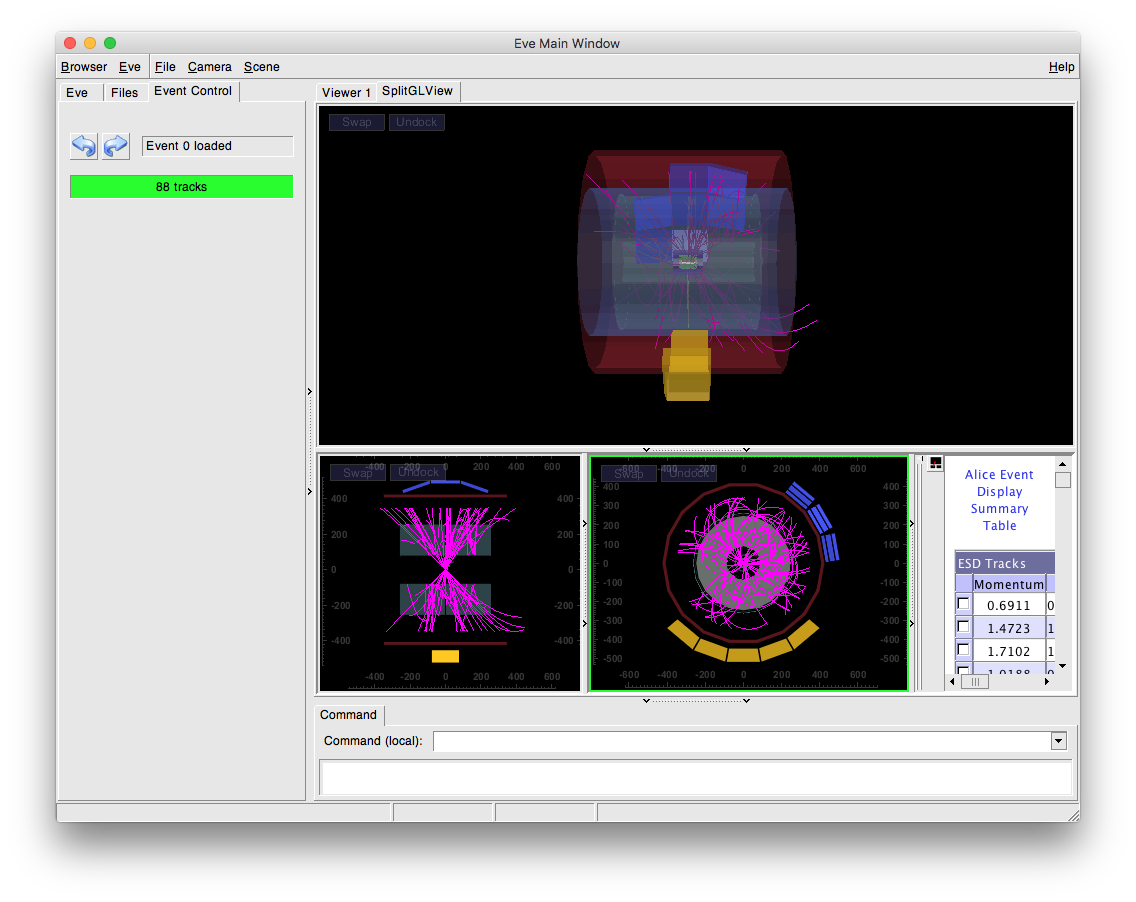 Complex example showing ALICE ESD visualization in several views.