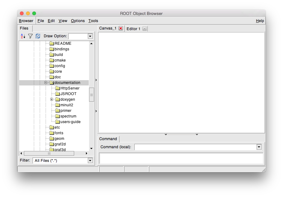 It shows in a list on the left side of the window all browsable ROOT classes. Selecting one of the classes displays, in the icon-box on the right side, all objects in the class. Selecting one of the objects in the icon-box, will place all browsable objects in a new list and draws the contents of the selected class in the icon-box. And so on....