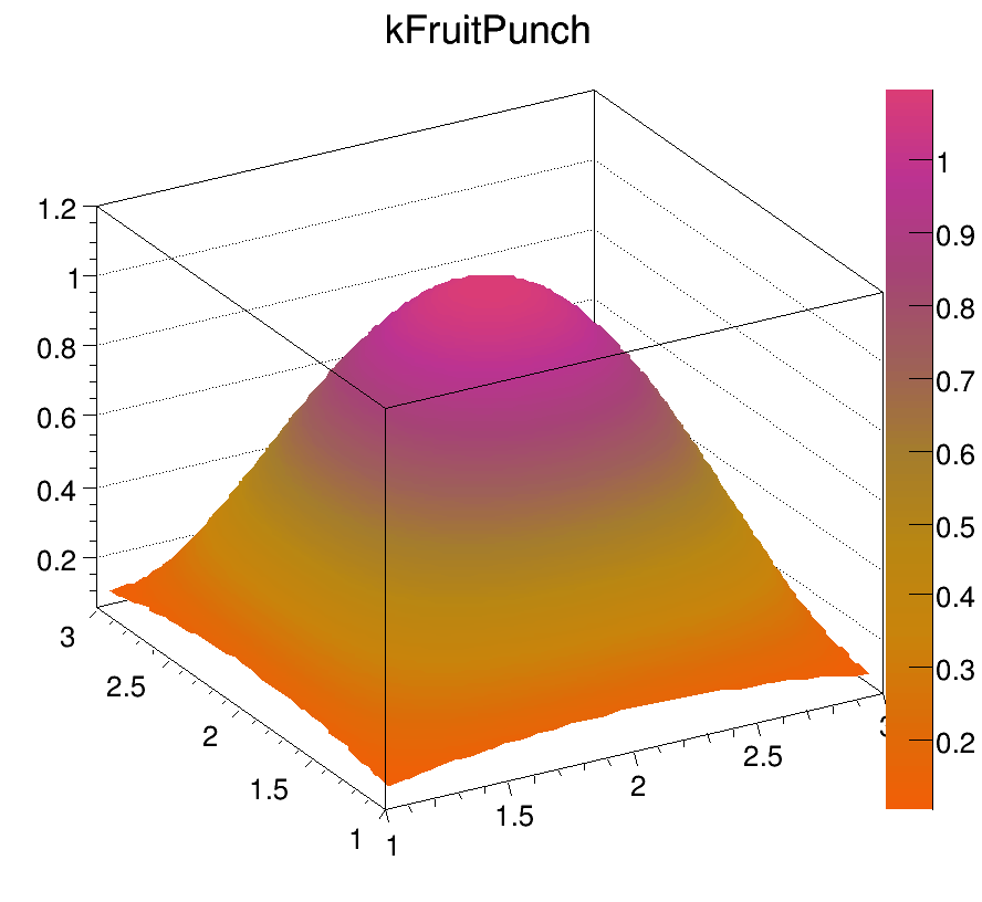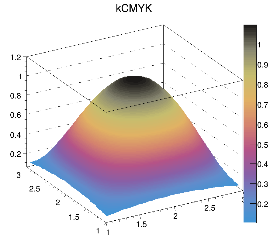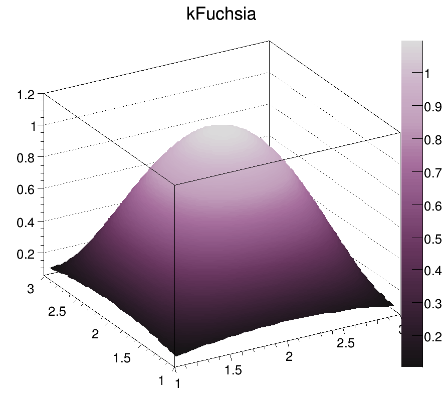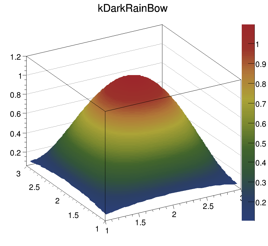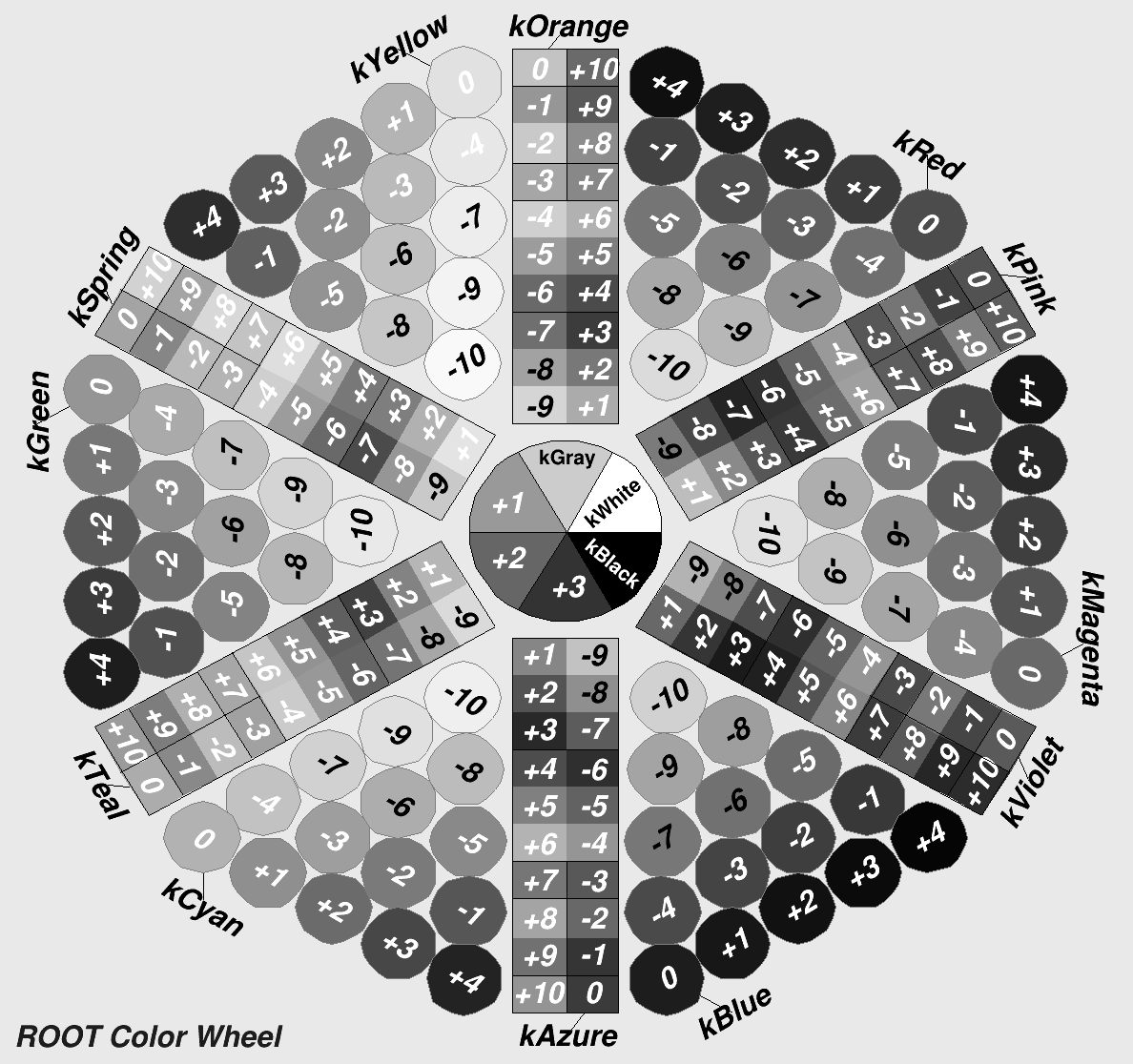 Each color chip is identified by a mnemonic (e.g. kYellow) and a number. The keywords, kRed, kBlue, kYellow, kPink, etc are defined in the header file Rtypes.h that is included in all ROOT other header files. It is better to use these keywords in user code instead of hardcoded color numbers, e.g.: