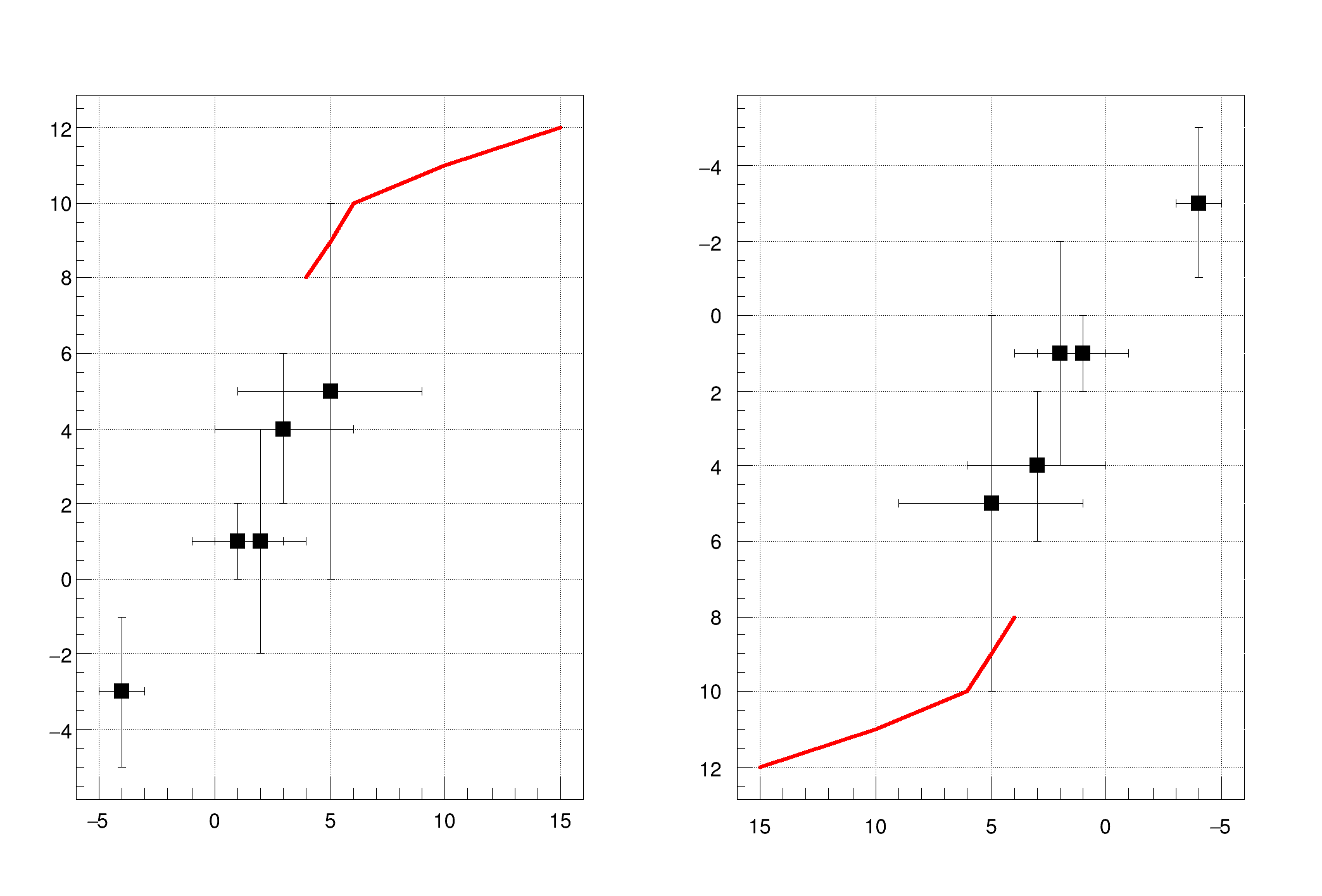 When a TMultiGraph is drawn, the X-axis is drawn with increasing values from left to right and the Y-axis from bottom to top. The two options RX and RY allow to change this order. The option RX allows to draw the X-axis with increasing values from right to left and the RY option allows to draw the Y-axis with increasing values from top to bottom. The following example illustrate how to use these options.