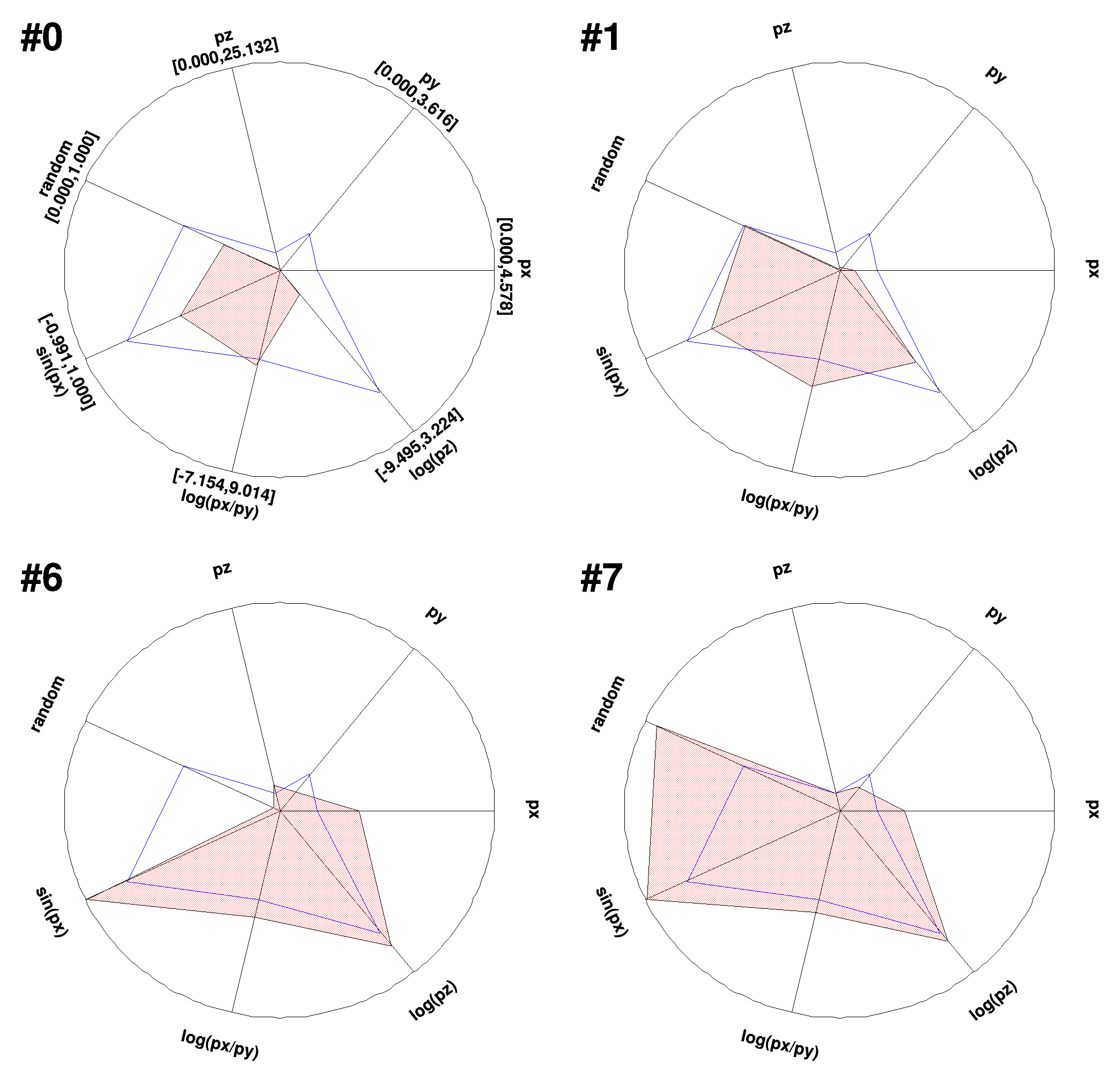 A spider view is a handy way to visualize a set of data stored in a TTree. It draws as many polar axes as selected data members. For each of them, it draws on the axis the position of the present event between the min and max of the data member. Two modes are available: