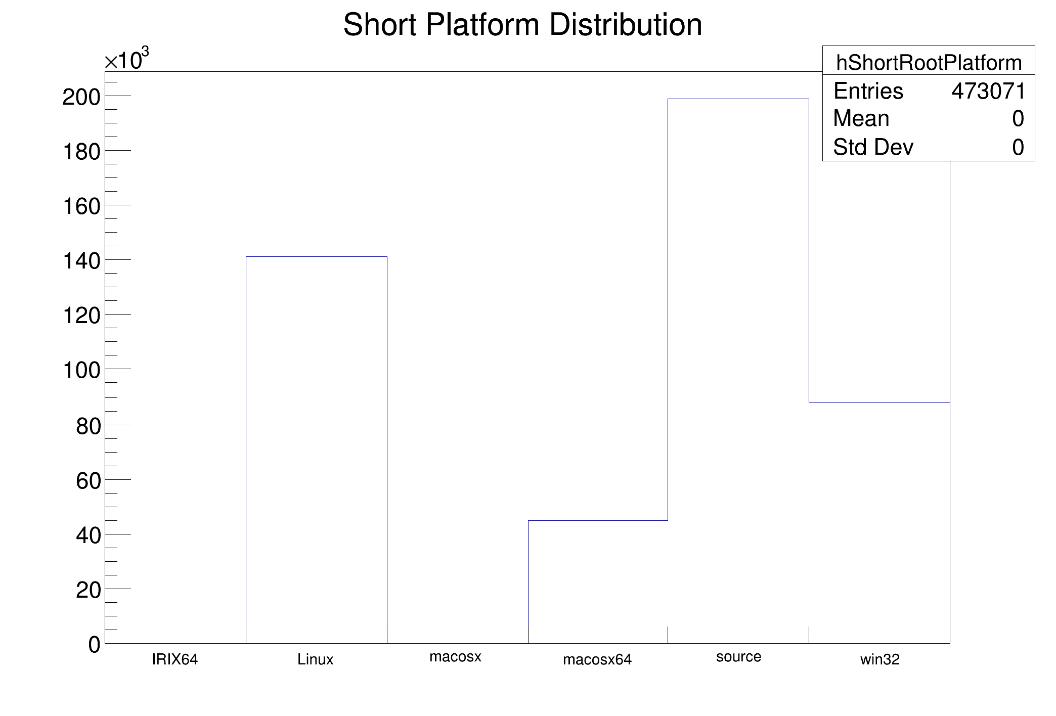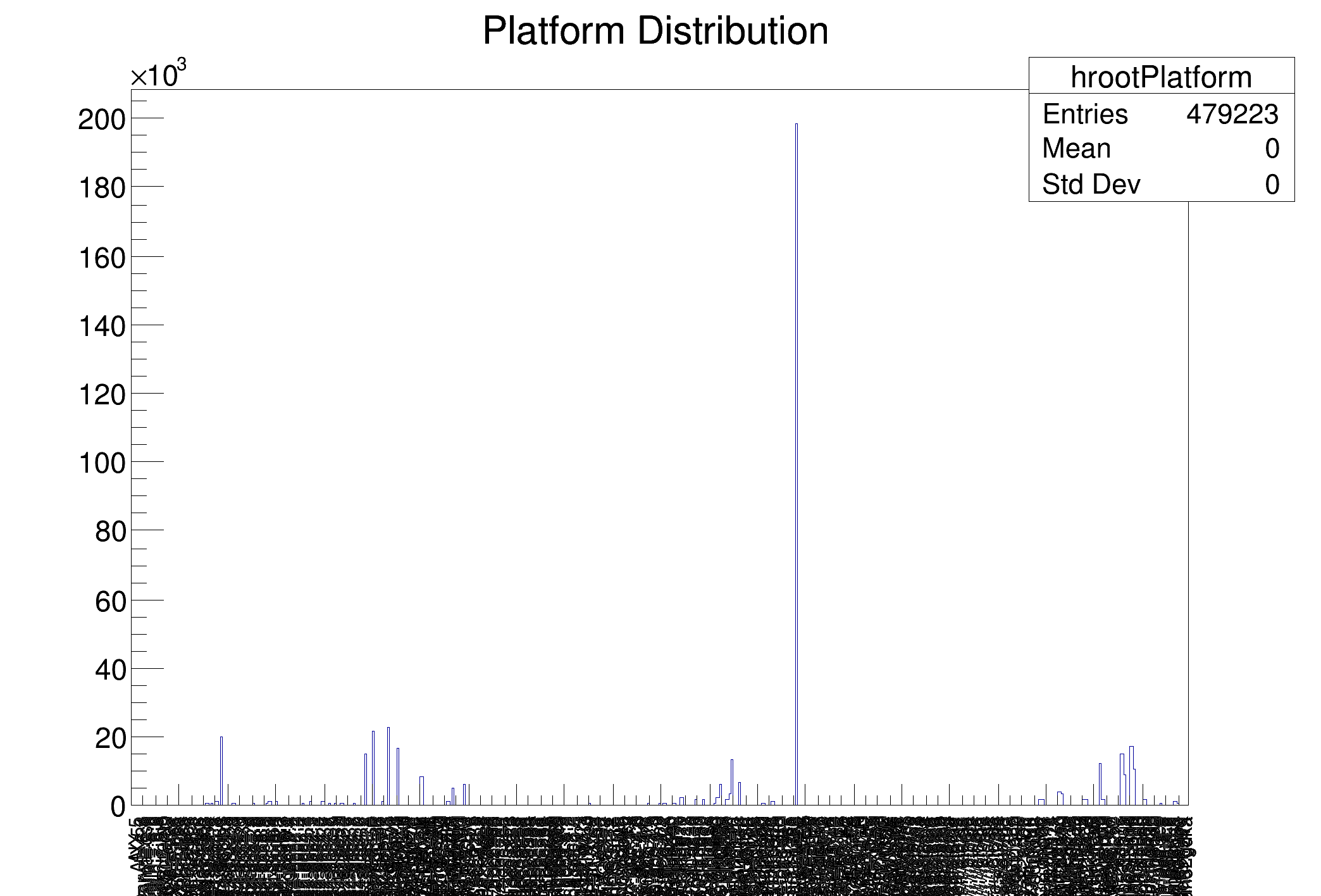In order to display the Platform Distribution of ROOT, we choose to create two TH1F histograms: one that includes all types of platforms, other filtering and classifying them. This procedure is using a lambda expression taking as parameter the values stored in the "Platform" column from the database. At the end, the histograms are filled with their specific demand regarding the platform's type.