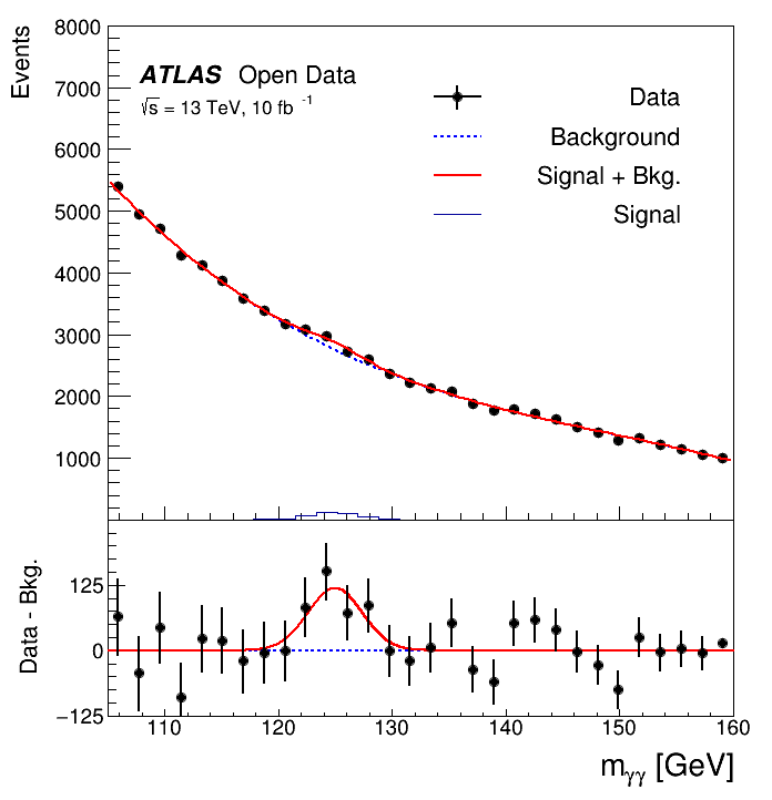 The data was taken with the ATLAS detector during 2016 at a center-of-mass energy of 13 TeV. Although the Higgs to two photons decay is very rare, the contribution of the Higgs can be seen as a narrow peak around 125 GeV because of the excellent reconstruction and identification efficiency of photons at the ATLAS experiment.