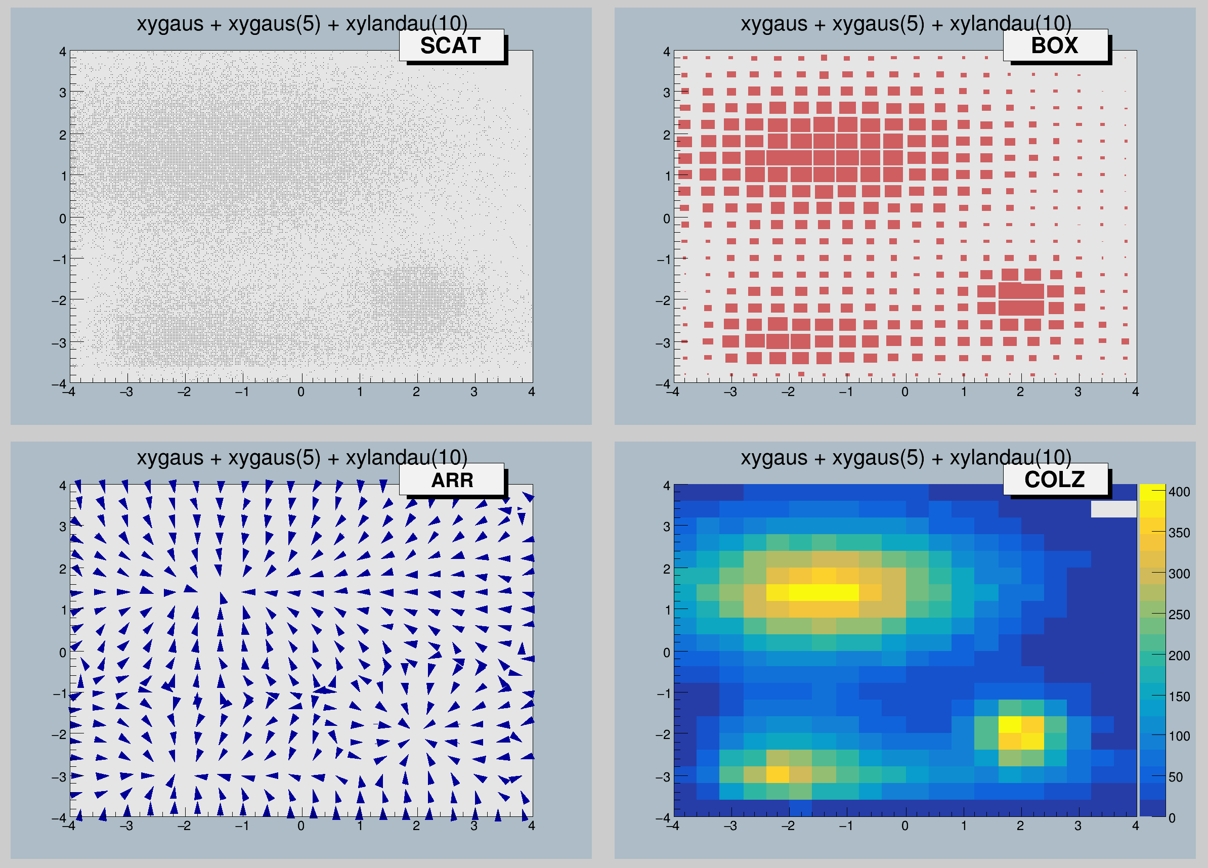 auto c2h = new TCanvas("c2h","2-d options",10,10,800,600);