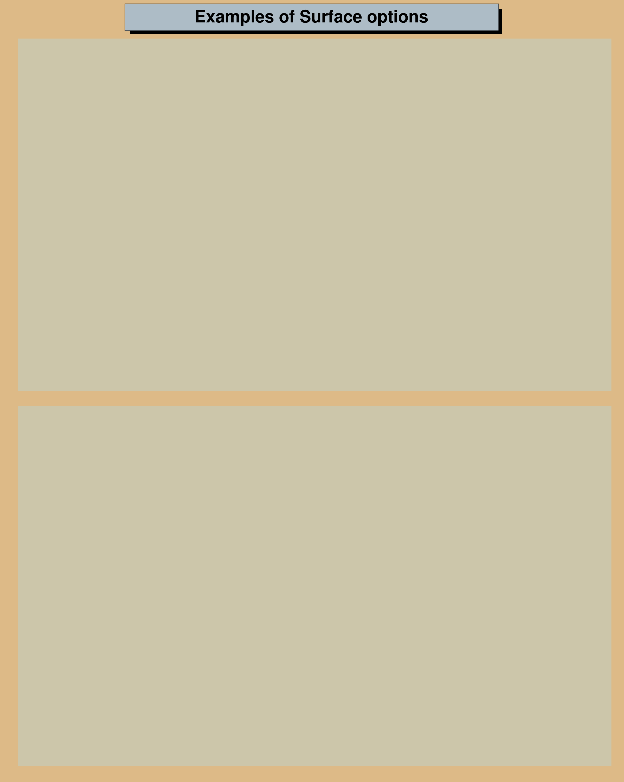 title->AddText("Examples of Surface options");