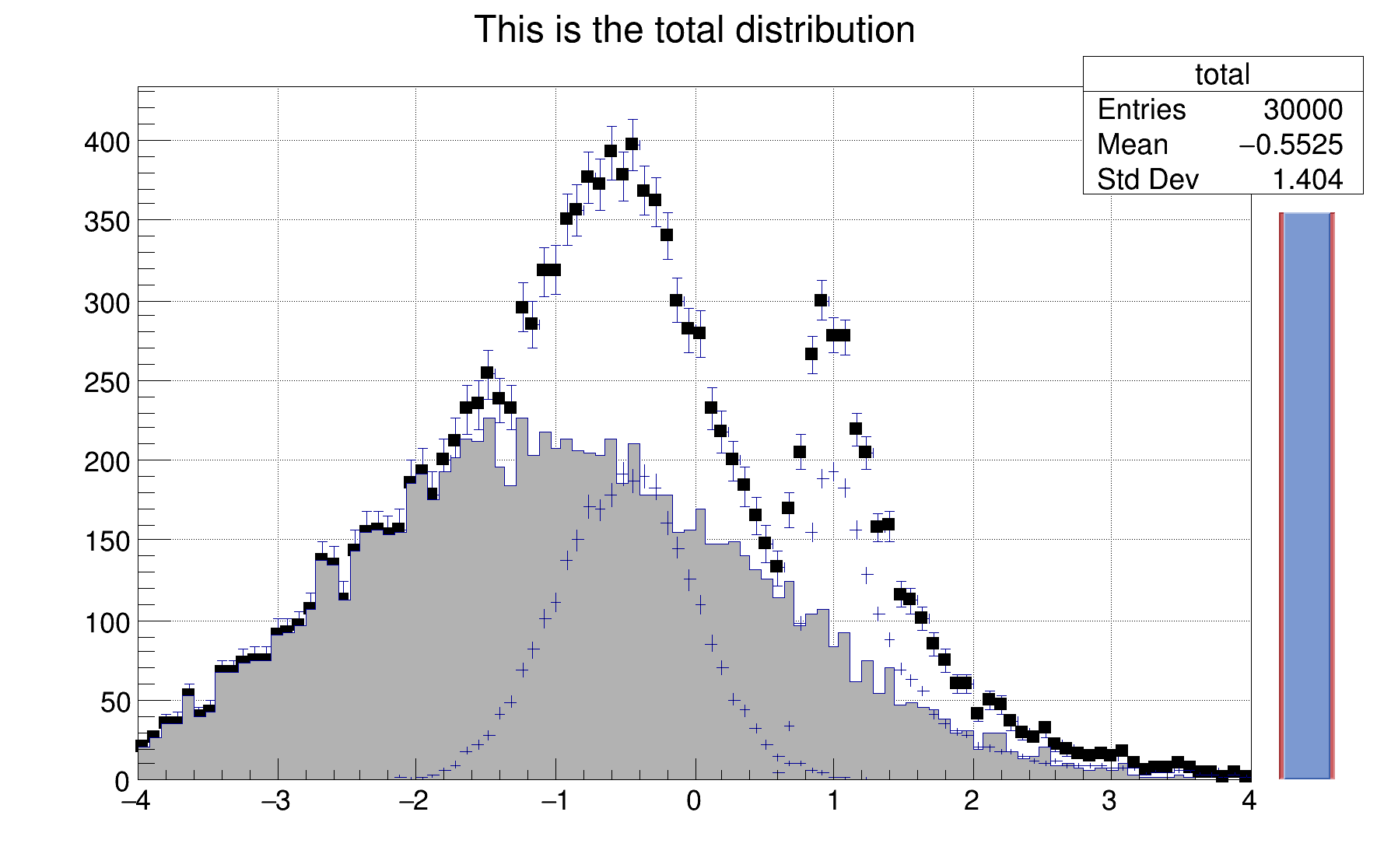 auto total = new TH1F("total","This is the total distribution",100,-4,4);