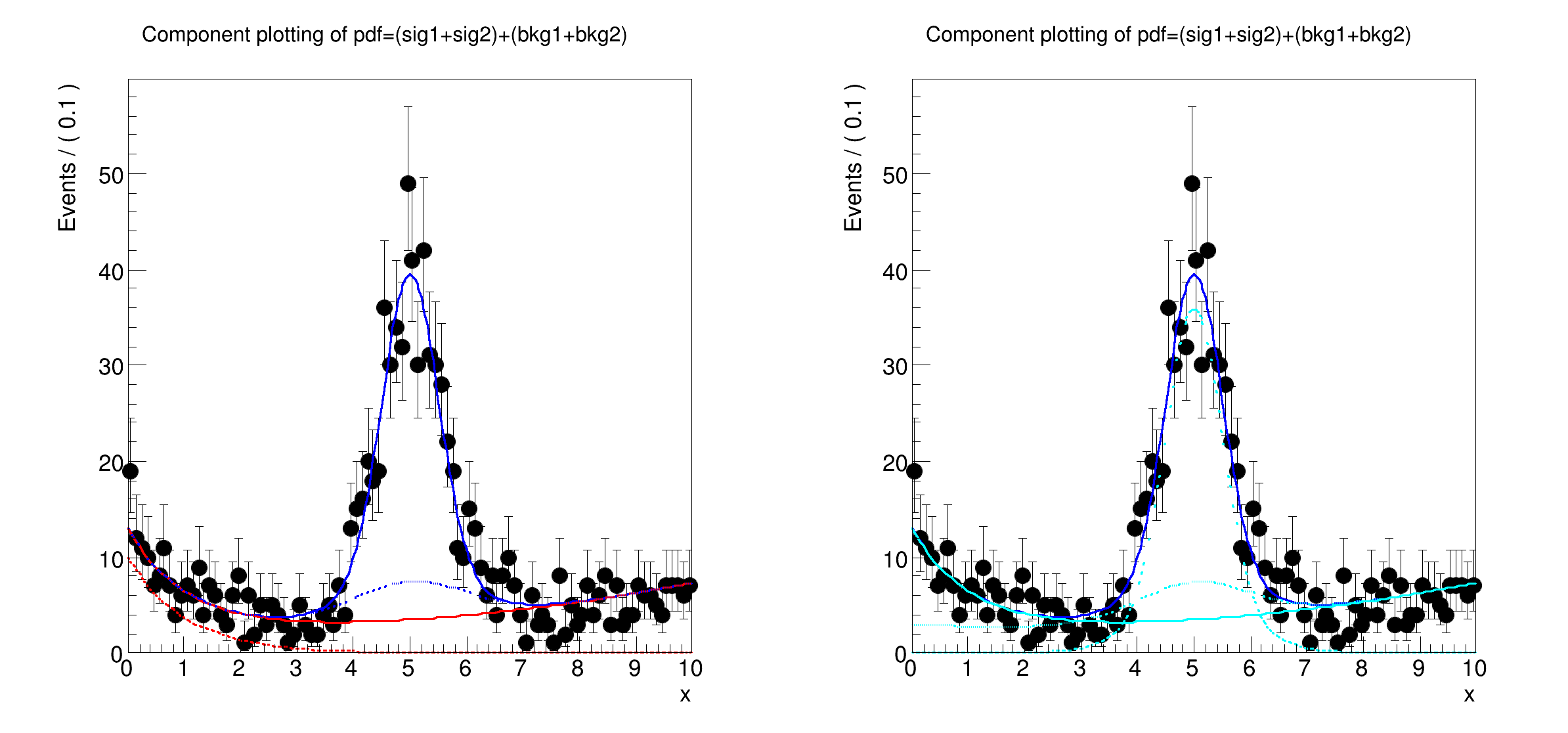 [#1] INFO:Plotting -- RooAbsPdf::plotOn(model) indirectly selected PDF components: (bkg1,bkg2)