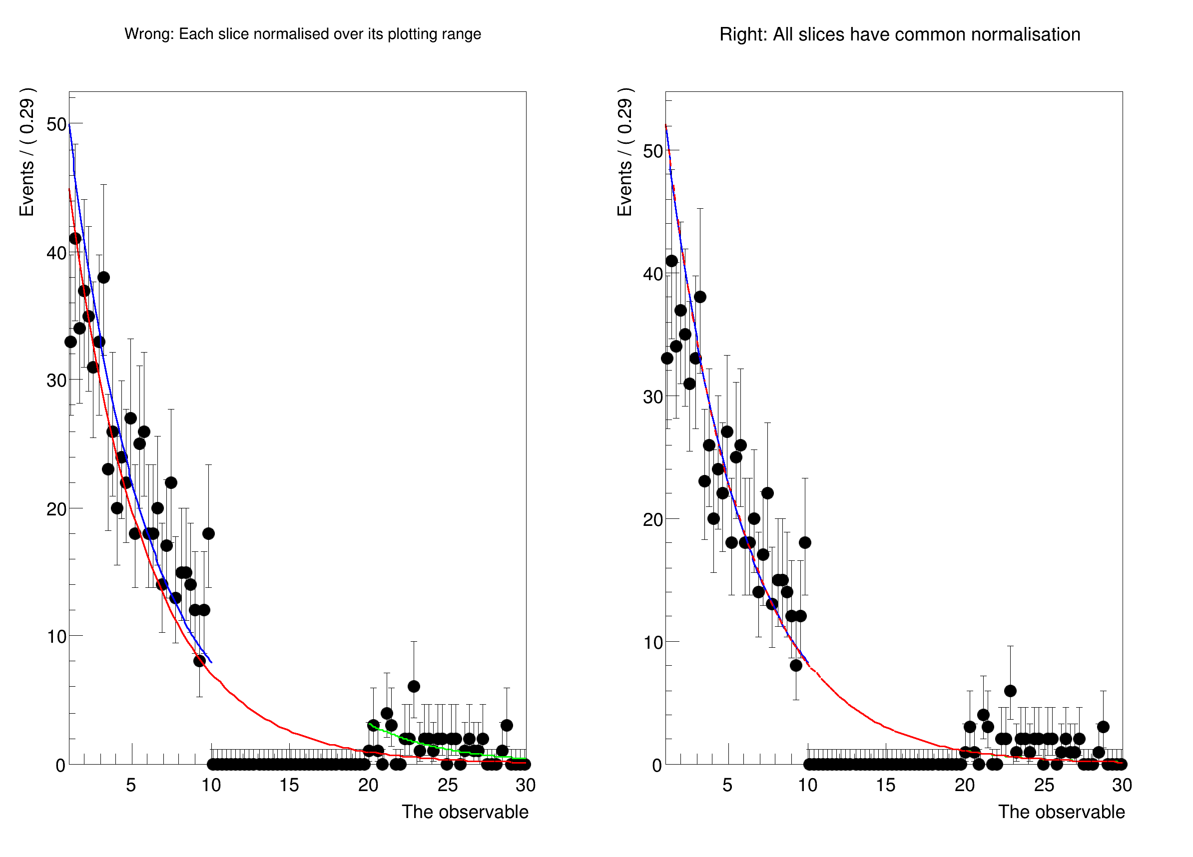 [#1] INFO:Plotting -- RooAbsPdf::plotOn(exp) p.d.f. curve is normalized using explicit choice of ranges 'left,right'