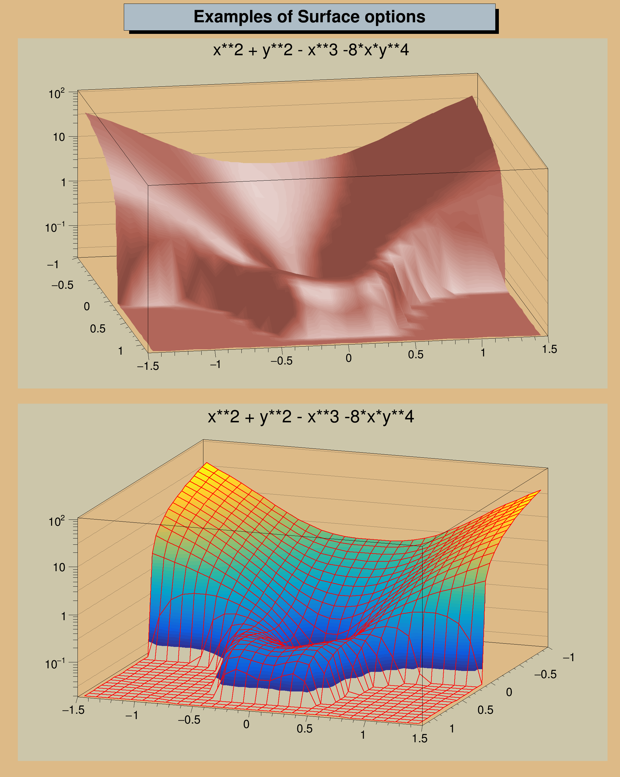 c1 = TCanvas( 'c1', 'Surfaces Drawing Options', 200, 10, 700, 900 )