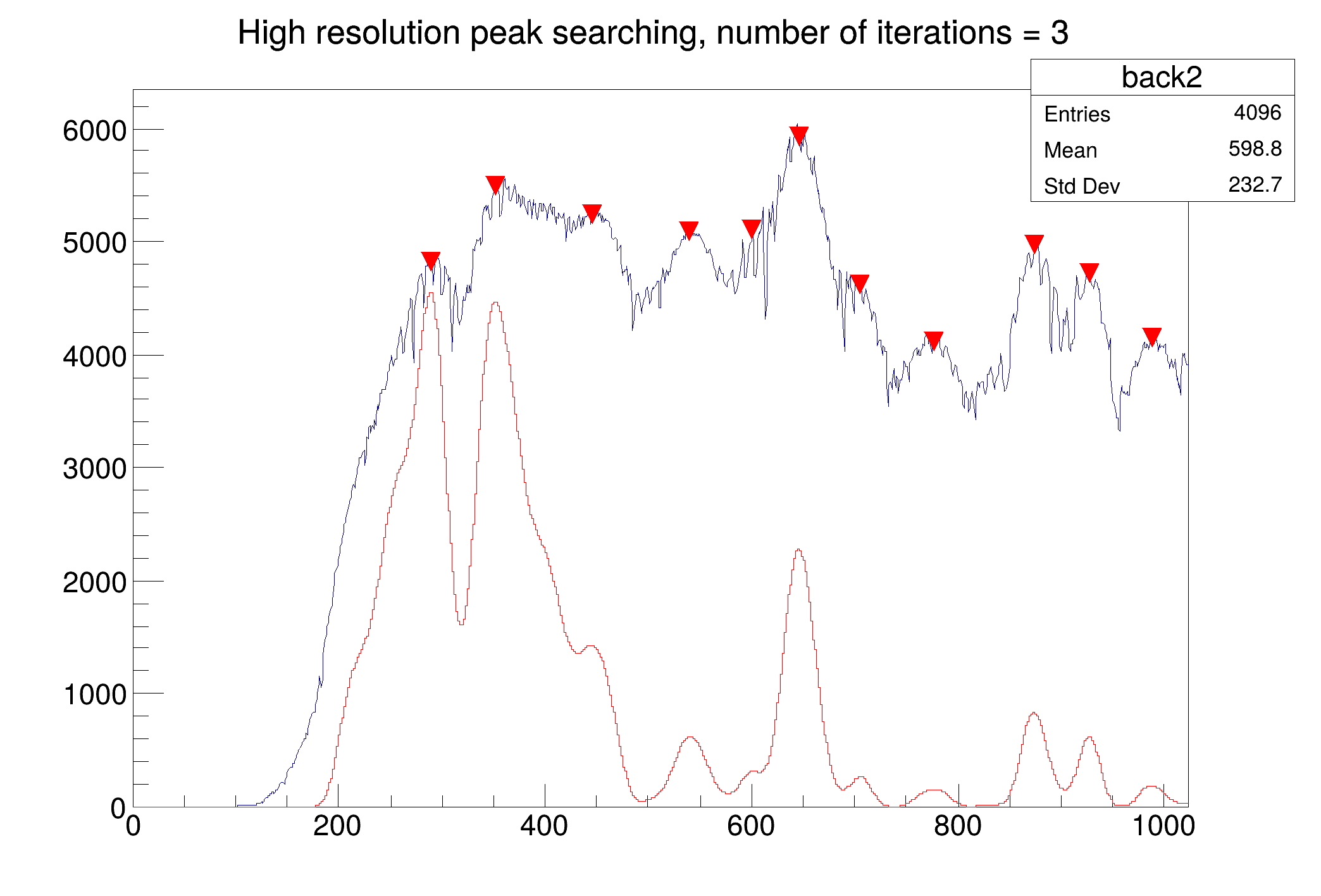 Int_t SearchHighRes(Double_t *source, Double_t *destVector, Int_t ssize, Double_t sigma, Double_t threshold, bool backgroundRemove, Int_t deconIterations, bool markov, Int_t averWindow)