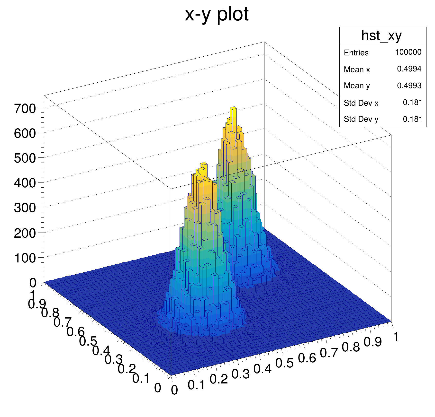 The above can be redefined before calling Initialize() method, for instance FoamObject->SetkDim(15) sets dimension of the distribution to 15. Only kDim HAS TO BE redefined, the other parameters may be left at their defaults. nCell may be increased up to about million cells for wildly peaked distributions. Increasing nSampl sometimes helps, but it may cost CPU time. MaxWtRej may need to be increased for wild a distribution, while using OptRej=0.