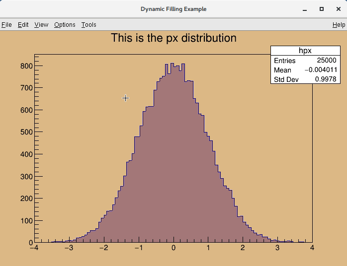 root [0] h->Draw(); // Draw "h" using the standard histogram representation.