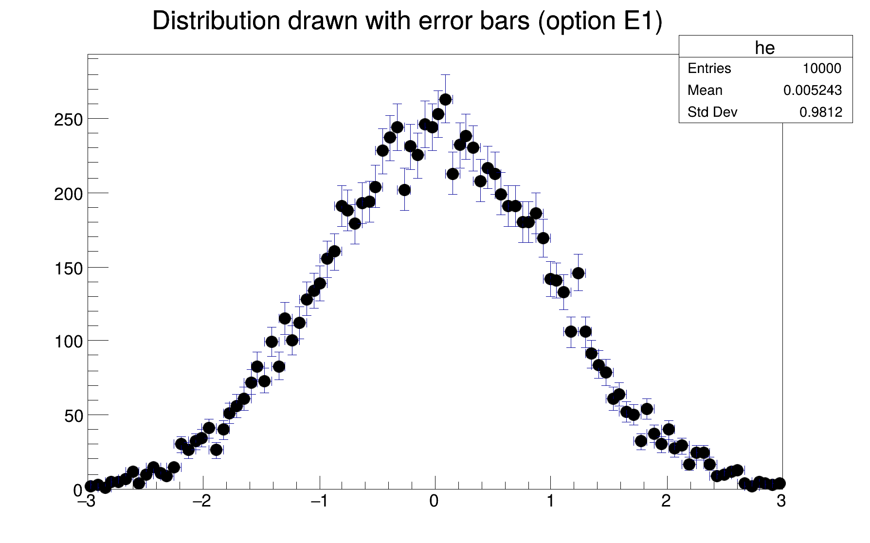 root [1] h->Draw("E"); // Draw "h" using error bars