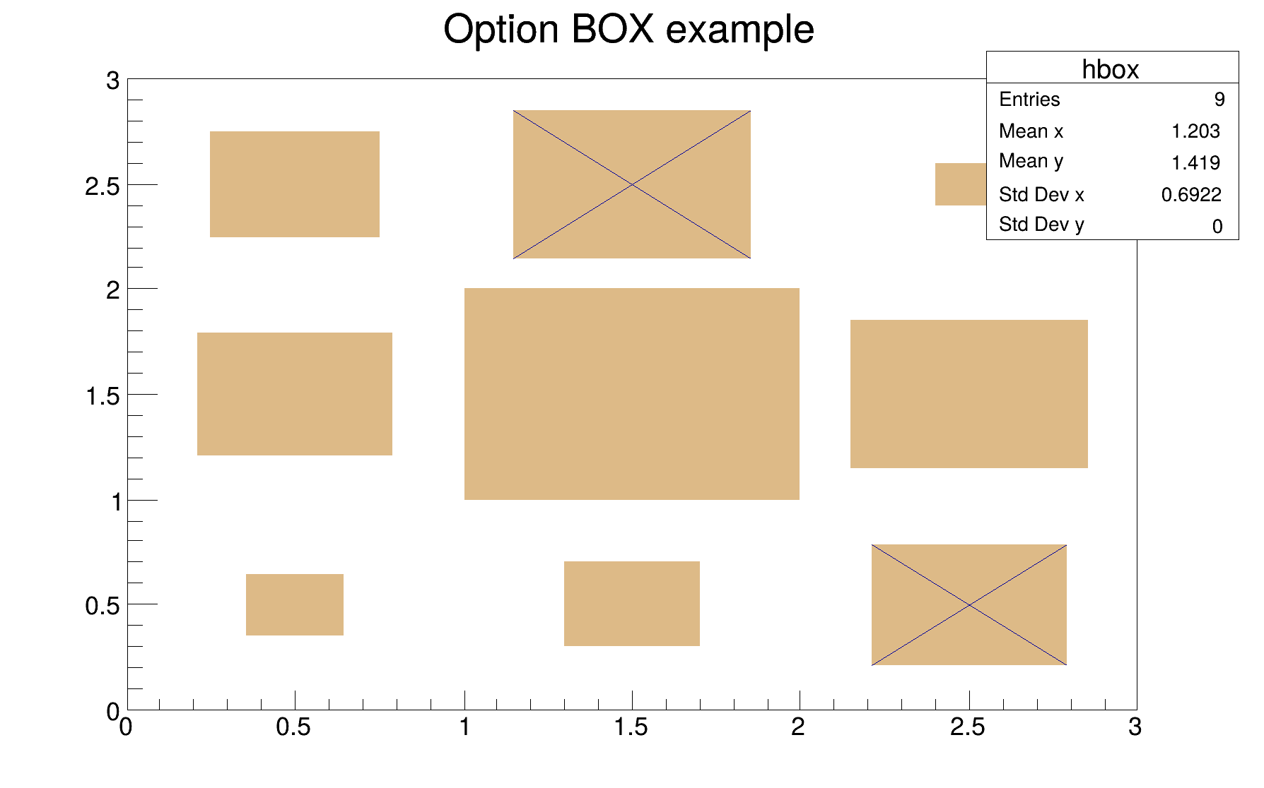 | "BOX" | A box is drawn for each cell with surface proportional to the content's absolute value. A negative content is marked with a X. |