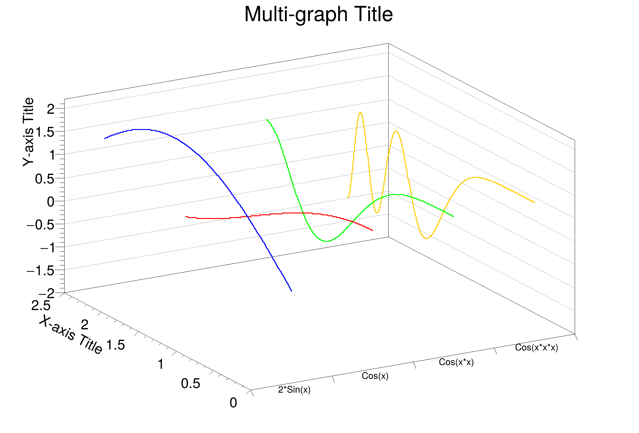 When a TMultiGraph is drawn, the X-axis is drawn with increasing values from left to right and the Y-axis from bottom to top. The two options RX and RY allow to change this order. The option RX allows to draw the X-axis with increasing values from right to left and the RY option allows to draw the Y-axis with increasing values from top to bottom. The following example illustrate how to use these options.