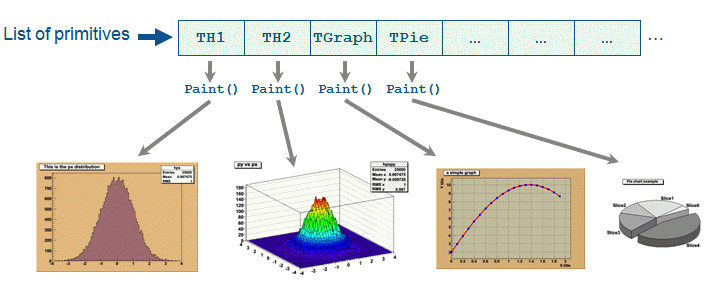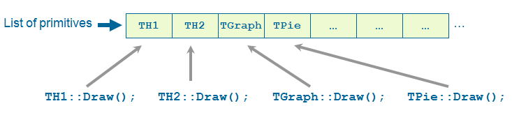 A pad is a linked list of primitives of any type (graphics objects, histograms, detectors, tracks, etc.).