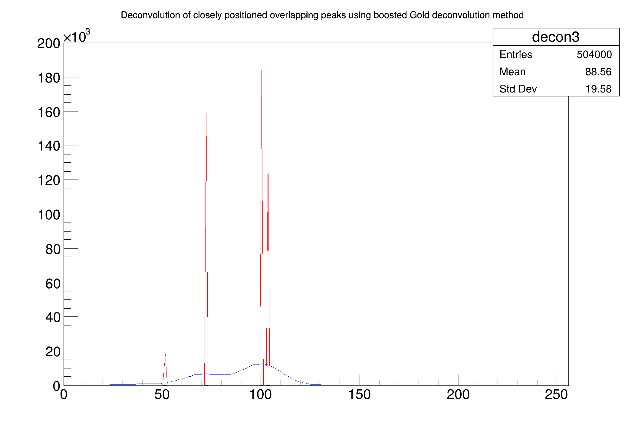 The SearchHighRes function provides users with the possibility to vary the input parameters and with the access to the output deconvolved data in the destination spectrum. Based on the output data one can tune the parameters.