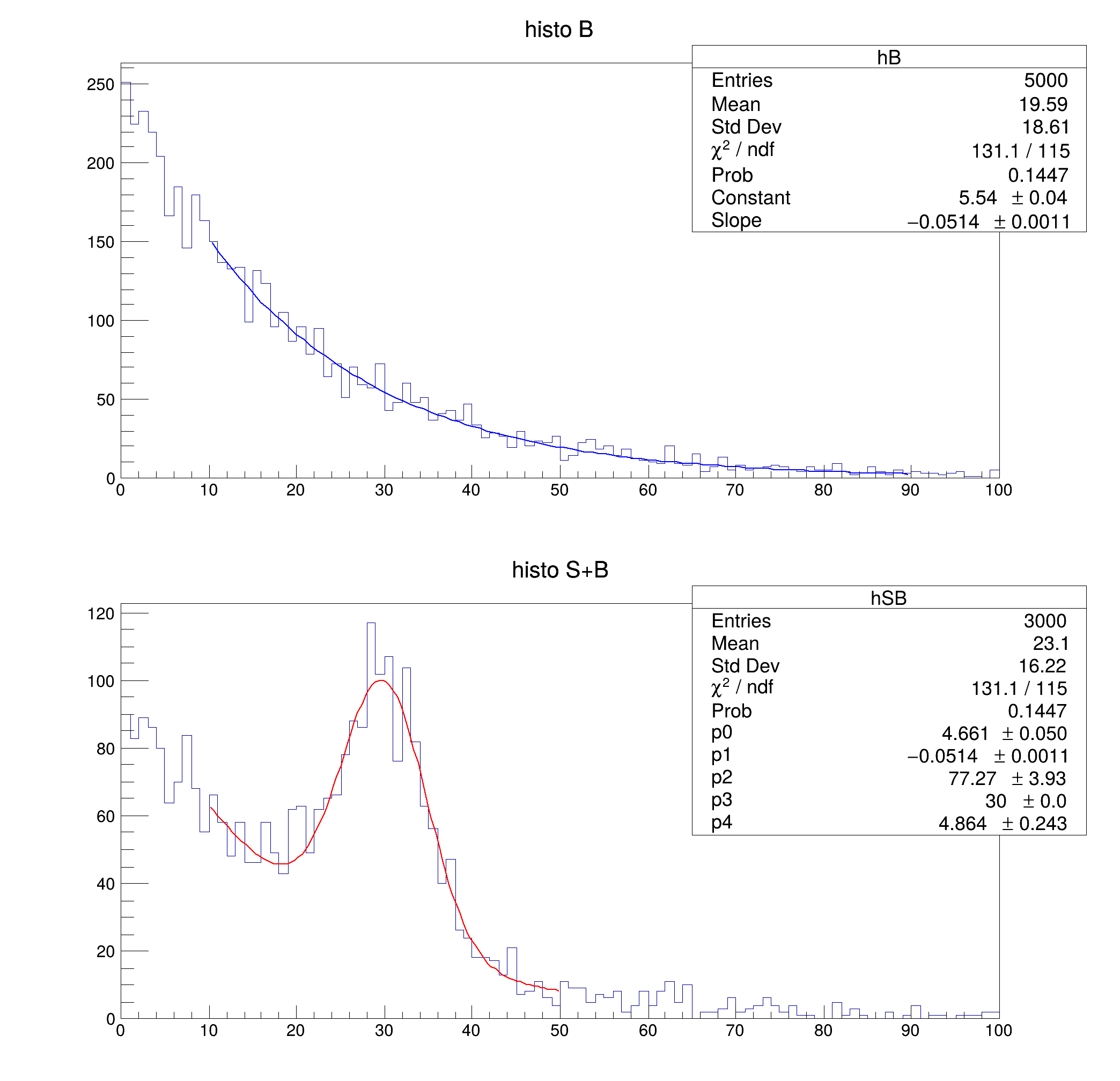 "Simultaneous fit of two histograms", 10, 10, 700, 700);