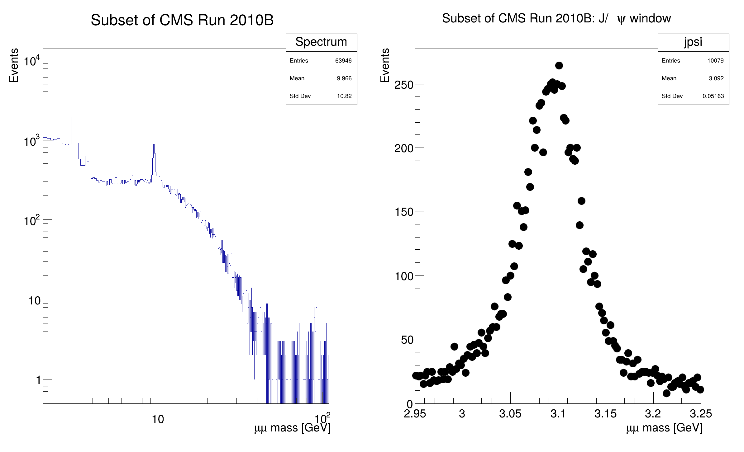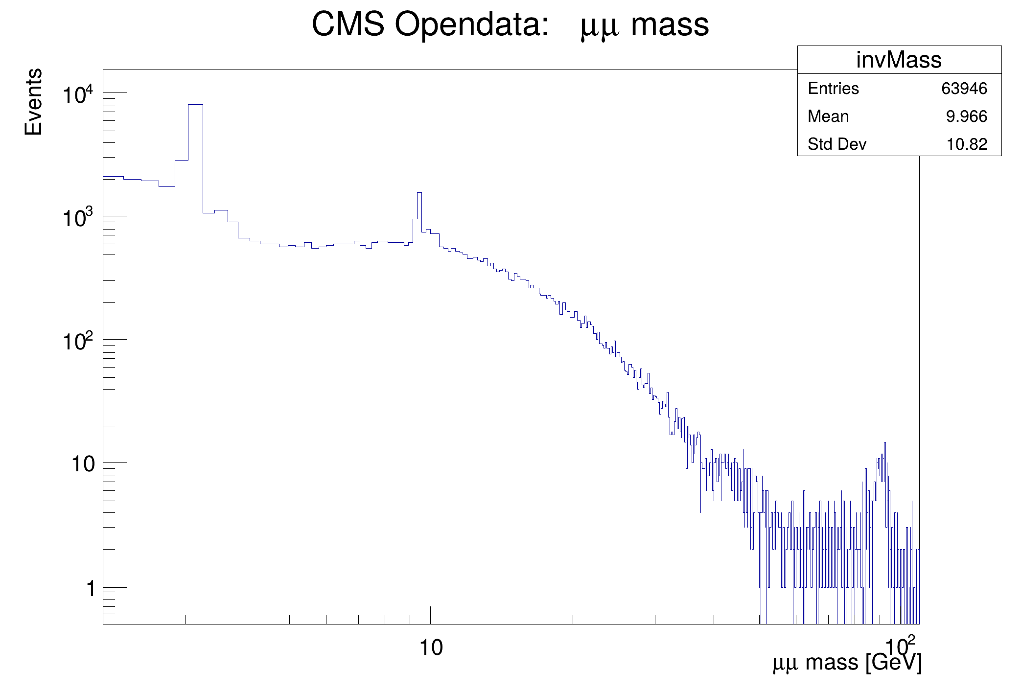 "Subset of CMS Run 2010B;#mu#mu mass [GeV];Events", 1024, 2, 110),