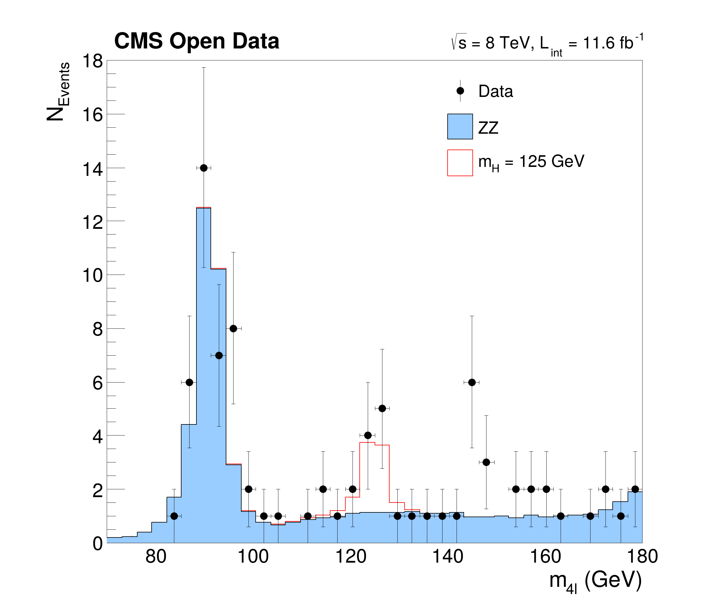 This tutorial is a simplified but yet complex example of an analysis reconstructing the Higgs boson decaying to two Z bosons from events with four leptons. The data and simulated events are taken from CERN OpenData representing a subset of the data recorded in 2012 with the CMS detector at the LHC. The tutorials follows the Higgs to four leptons analysis published on CERN Open Data portal (10.7483/OPENDATA.CMS.JKB8.RR42). The resulting plots show the invariant mass of the selected four lepton systems in different decay modes (four muons, four electrons and two of each kind) and in a combined plot indicating the decay of the Higgs boson with a mass of about 125 GeV.
