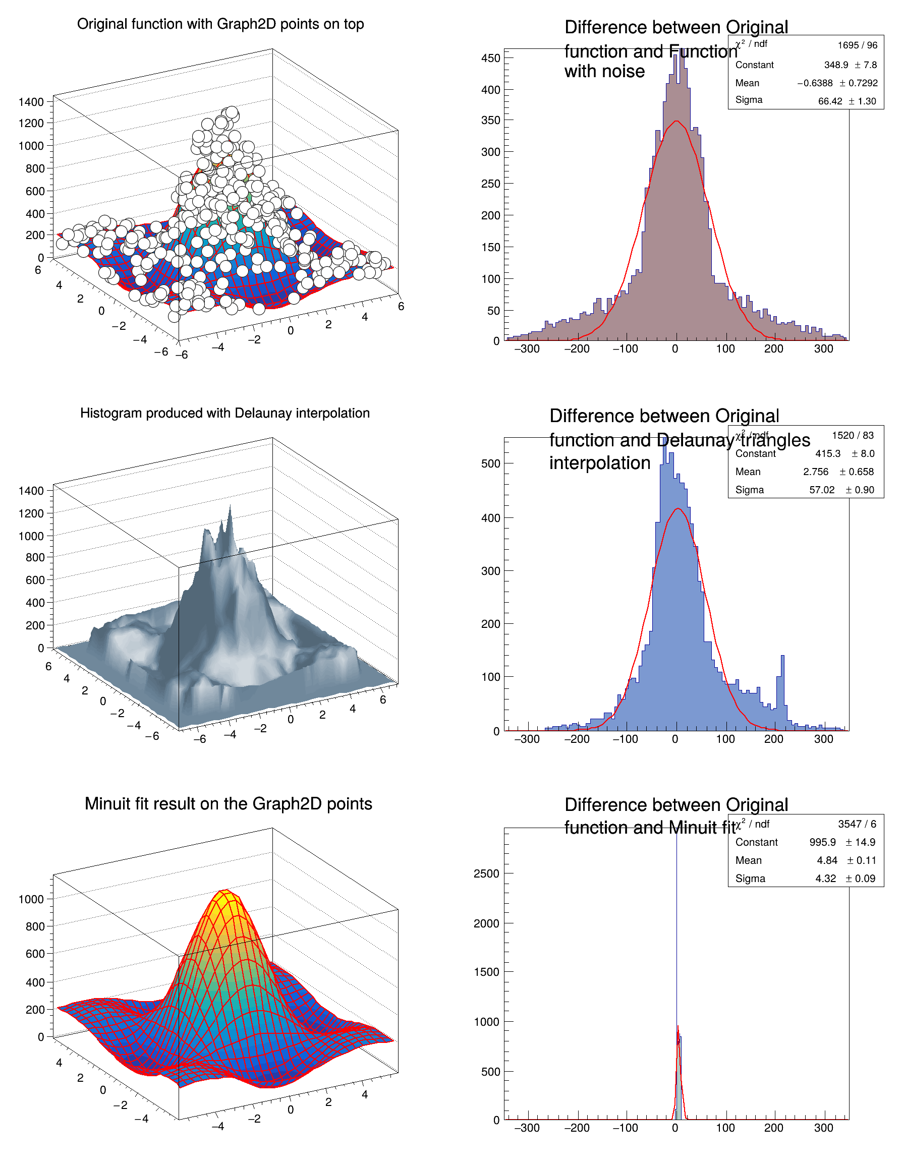 "#splitline{Difference between Original}{#splitline{function and Delaunay triangles}{interpolation}}",