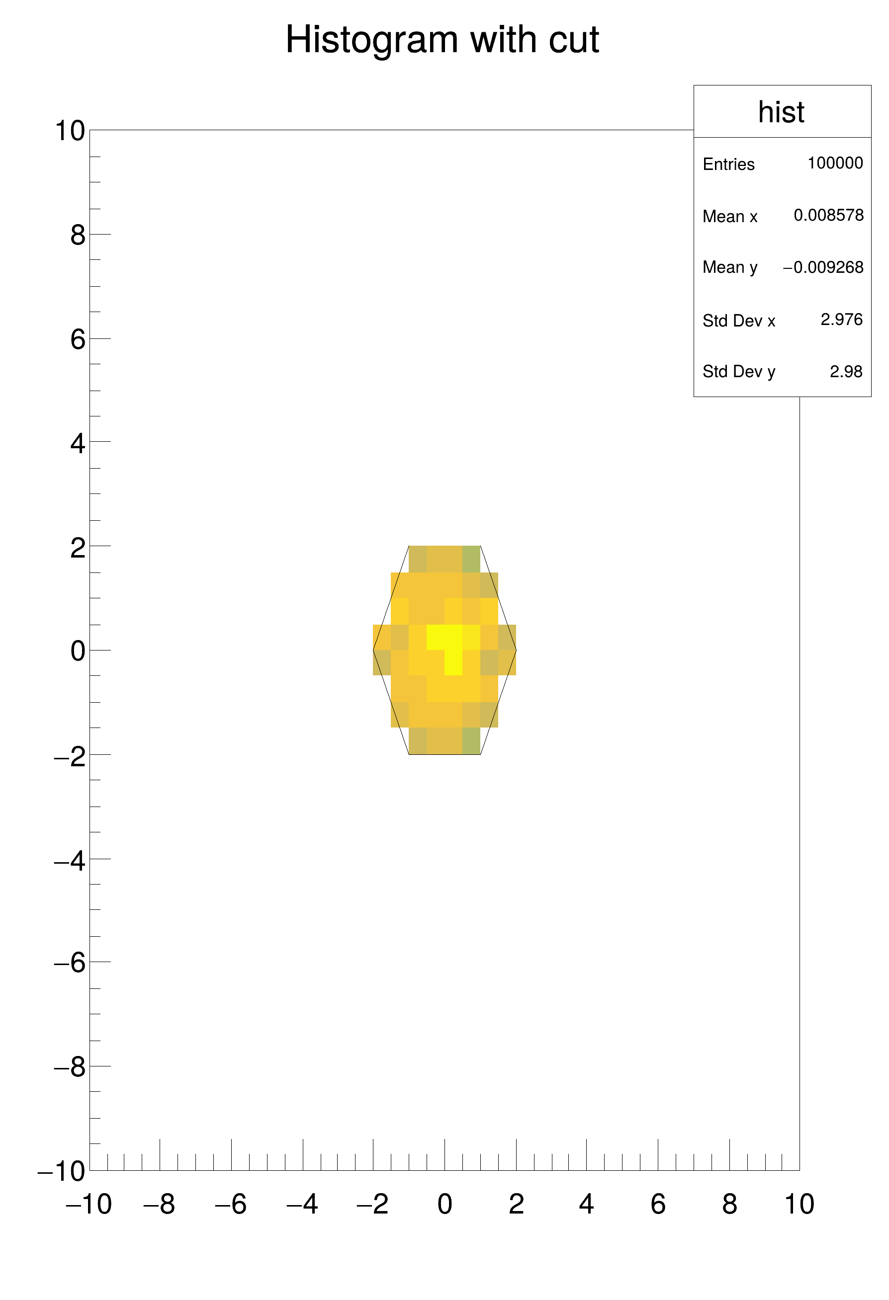 "Histogram with cut", 40, -10., 10., 40, -10., 10.);