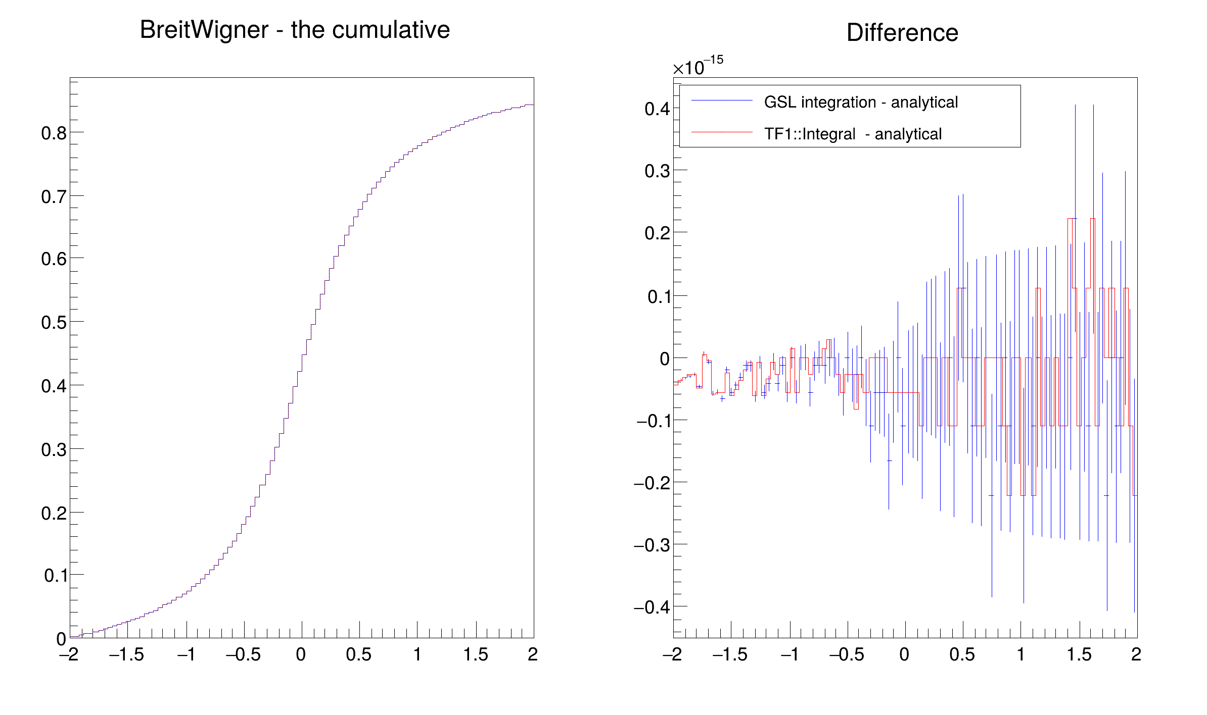 Example on the usage of the adaptive 1D integration algorithm of MathMore it calculates the numerically cumulative integral of a distribution (like in this case the BreitWigner) to execute the macro type it (you need to compile with AClic)