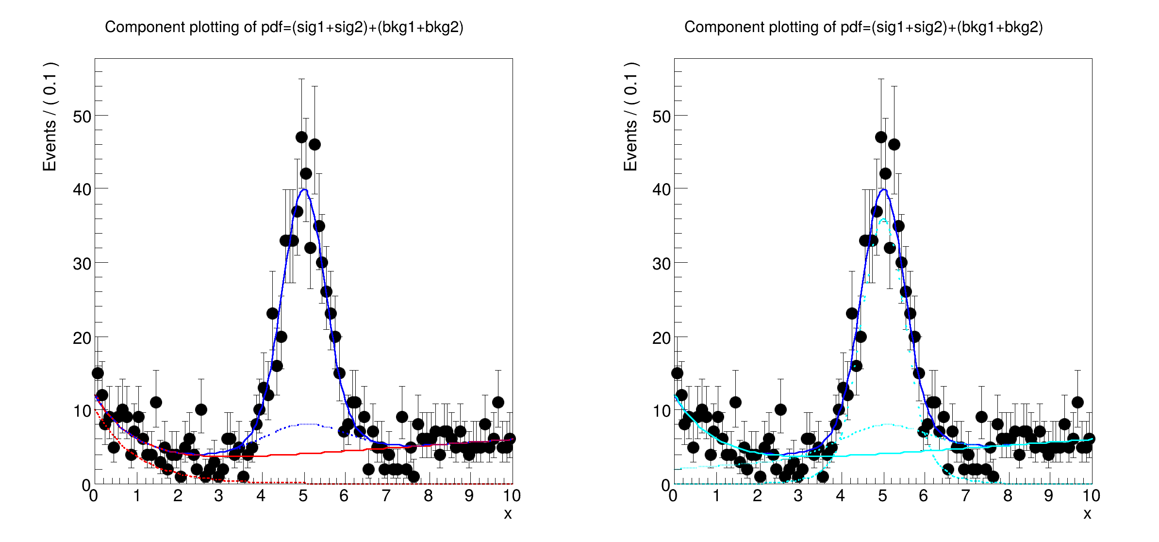 [#1] INFO:Plotting -- RooAbsPdf::plotOn(model) indirectly selected PDF components: (bkg1,bkg2)