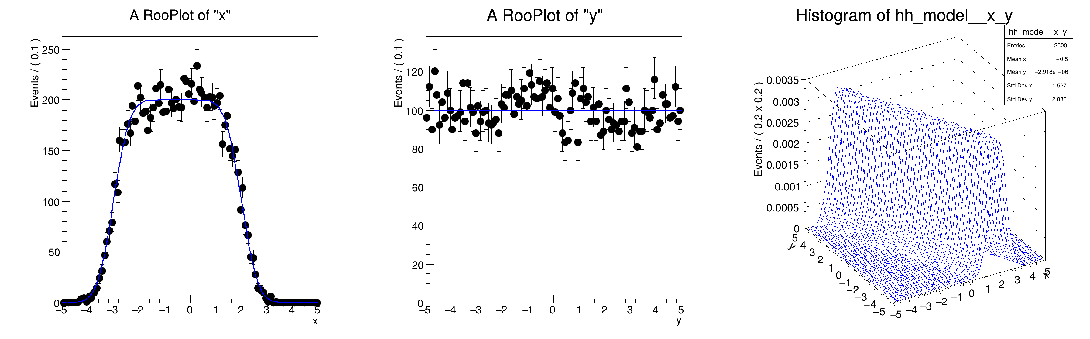 [#1] INFO:Plotting -- RooAbsReal::plotOn(model) plot on x integrates over variables (y)