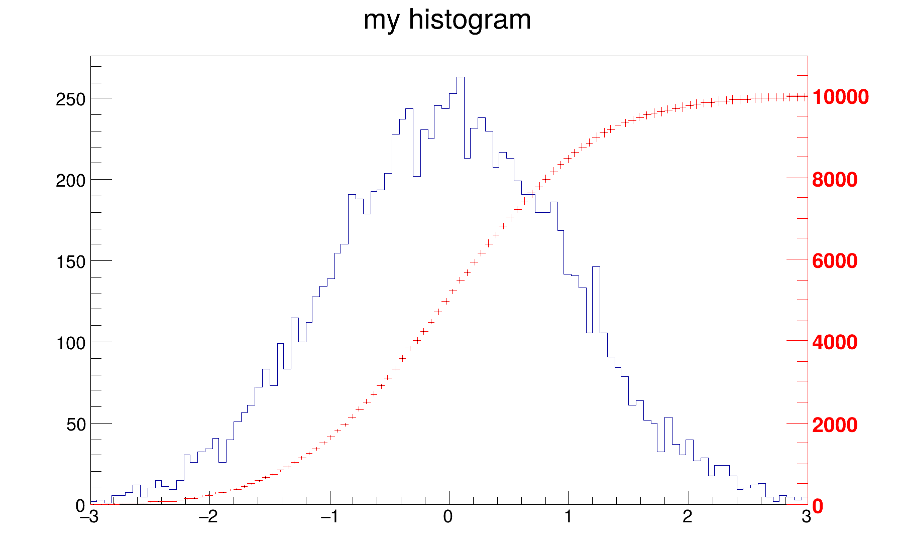 Example of macro illustrating how to superimpose two histograms with different scales in the "same" pad.