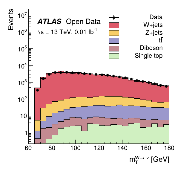 This tutorial is the analysis of the W boson mass taken from the ATLAS Open Data release in 2020 (http://opendata.atlas.cern/release/2020/documentation/). The data was recorded with the ATLAS detector during 2016 at a center-of-mass energy of 13 TeV. W bosons are produced frequently at the LHC and are an important background to studies of Standard Model processes, for example the Higgs boson analyses.