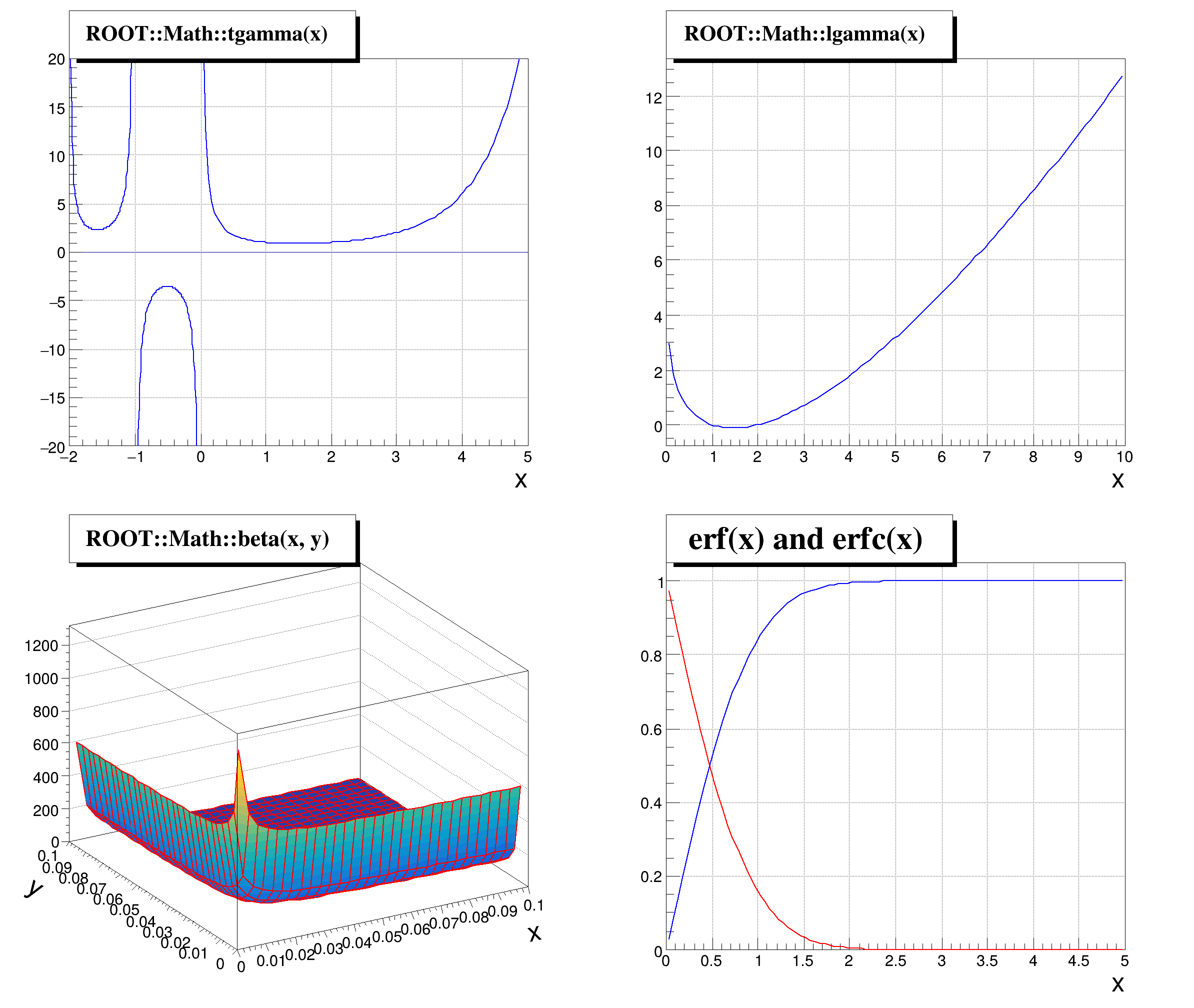 Example showing the usage of the major special math functions (gamma, beta, erf) in ROOT.
