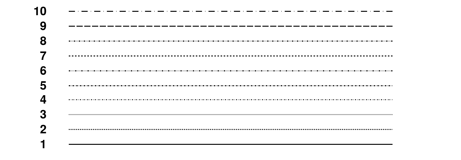 The first 10 line styles are predefined as shown on the following picture: