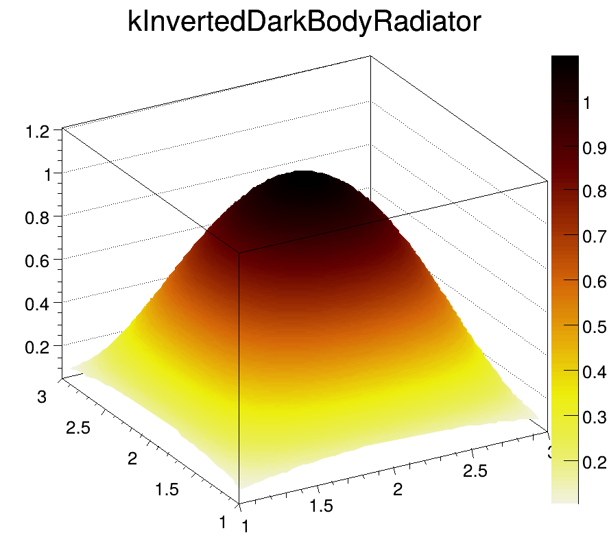 Once a palette is defined, it is possible to invert the color order thanks to the method TColor::InvertPalette. The top of the palette becomes the bottom and vice versa.