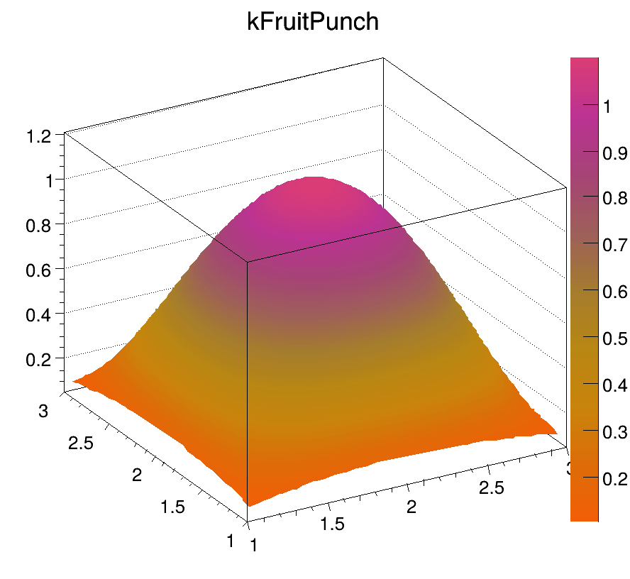 To define more a complex palette with a continuous gradient of color, one should use the static function TColor::CreateGradientColorTable(). The following example demonstrates how to proceed: