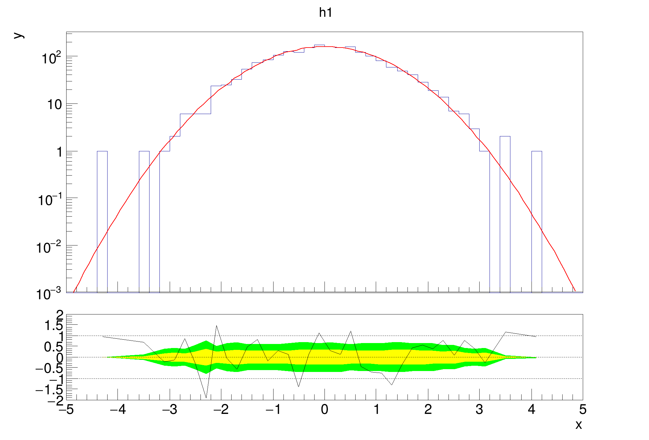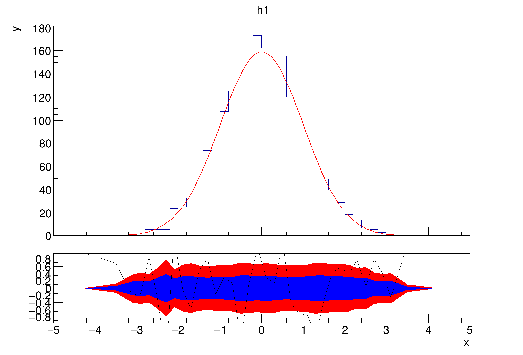auto h1 = new TH1D("h1", "TRatioPlot Example; x; y", 50, 0, 10);
