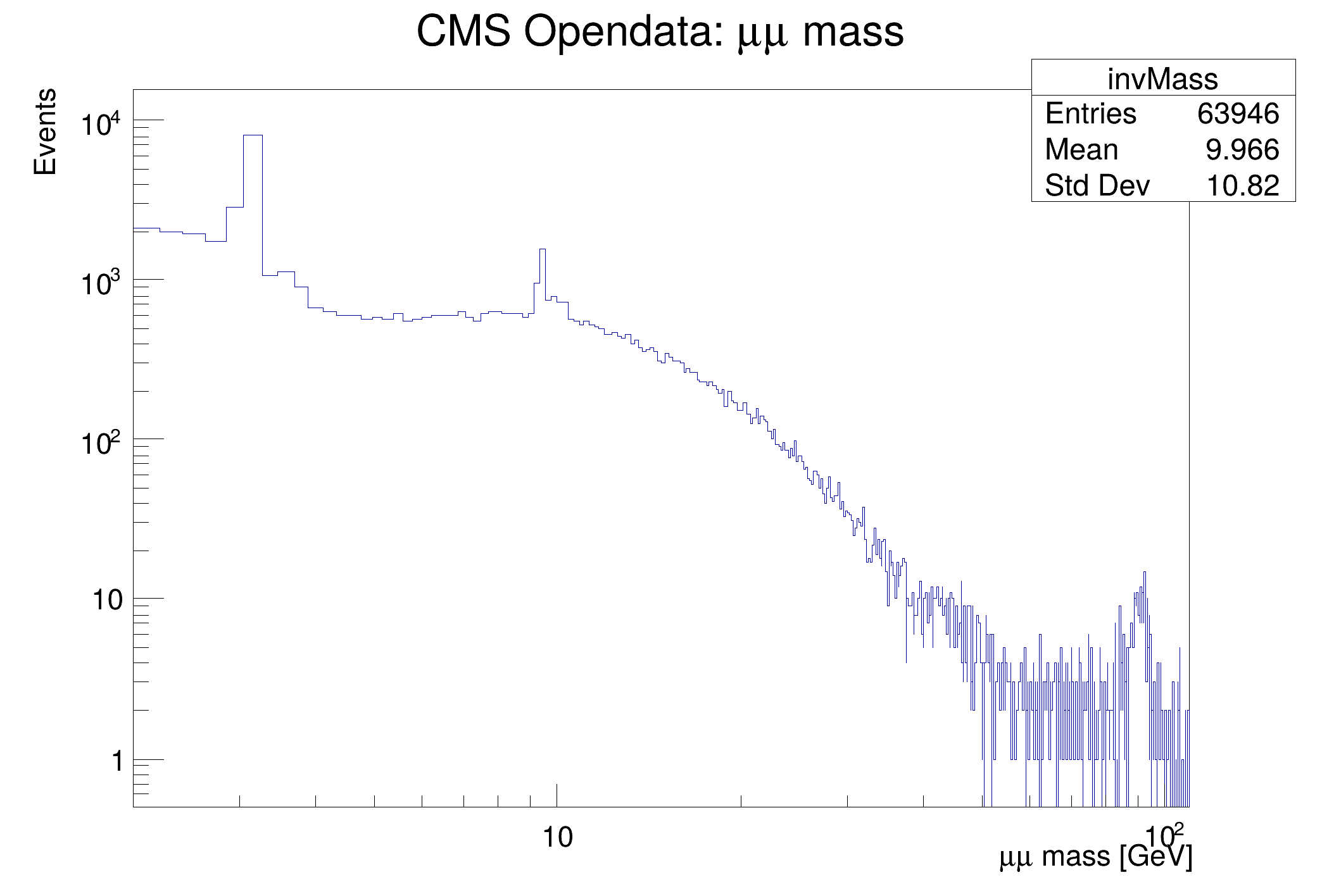 "Subset of CMS Run 2010B;#mu#mu mass [GeV];Events", 1024, 2, 110),