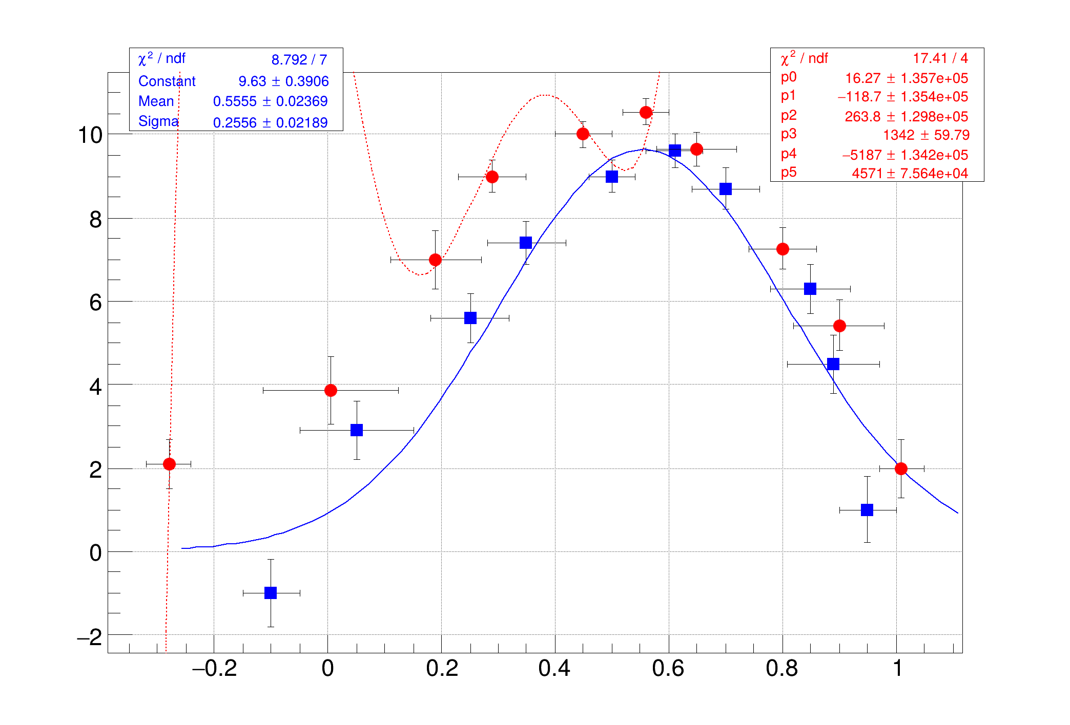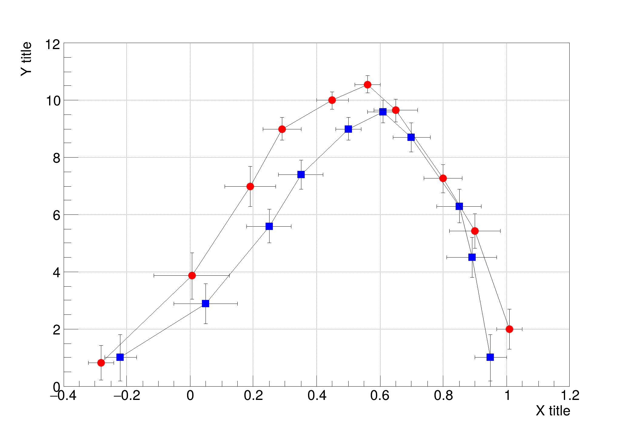 Create and draw two graphs with error bars, superposed on the same canvas | |