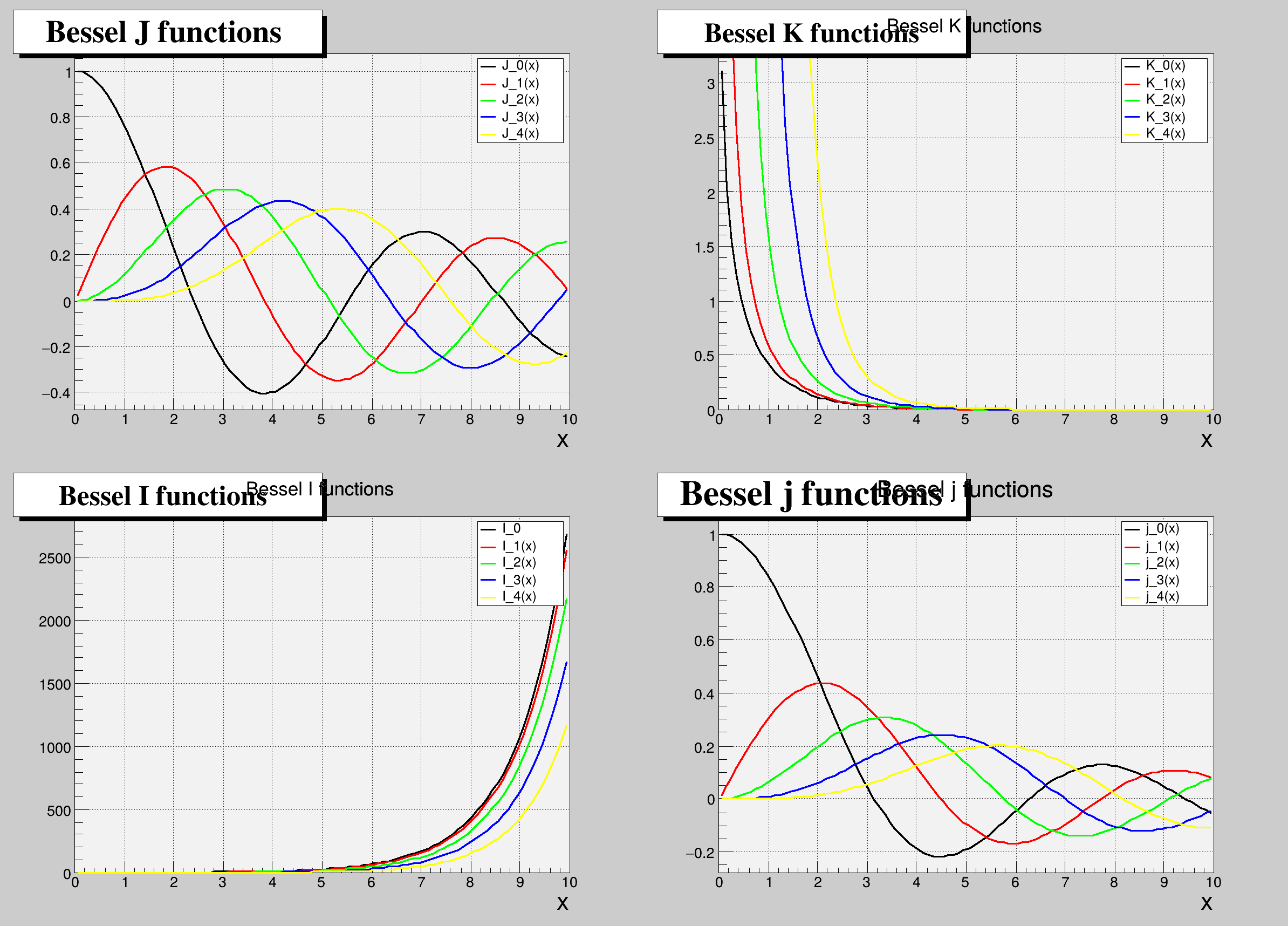 Show the different kinds of Bessel functions available in ROOT To execute the macro type in: